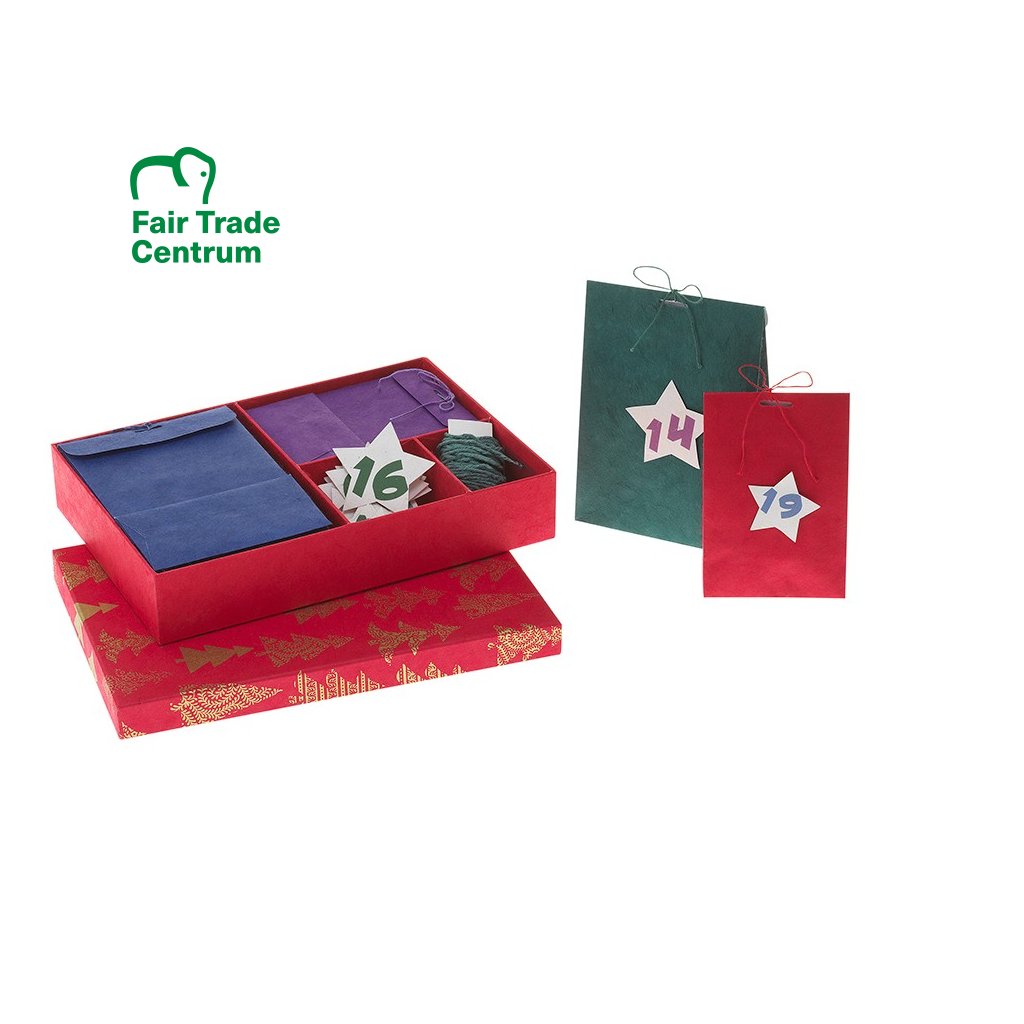 Adventní kalendář s ručními papírovými sáčky z Nepálu, prázdný