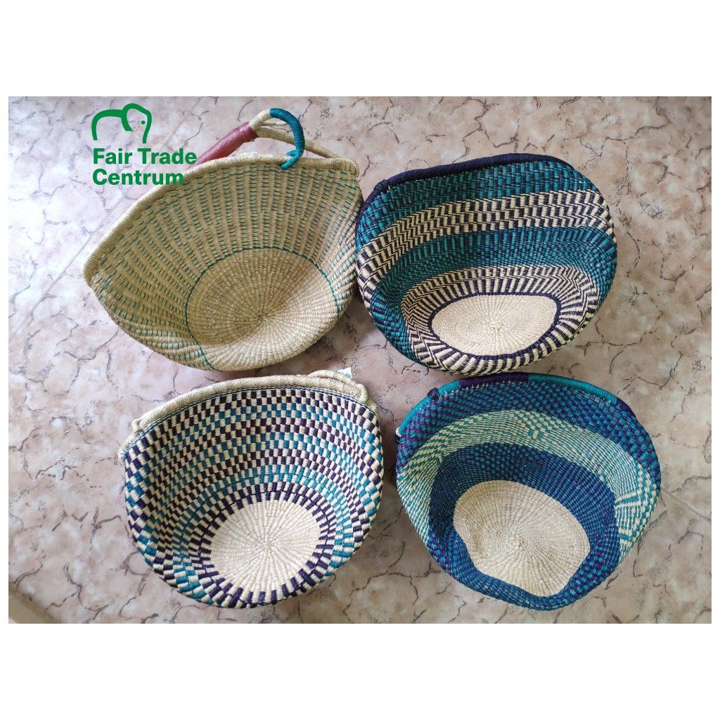Ruční práce z přírodního materiálu - každý kus je originál a vzájemně se liší velikostí, tvarem a zejména barvami. Barva v názvu koše označuje celkové ladění koše a skládá se z více barev i čistě přírodních listů trávy. Koš upletly ženy v Ghaně za spravedlivou odměnu dle myšlenky fair trade.
