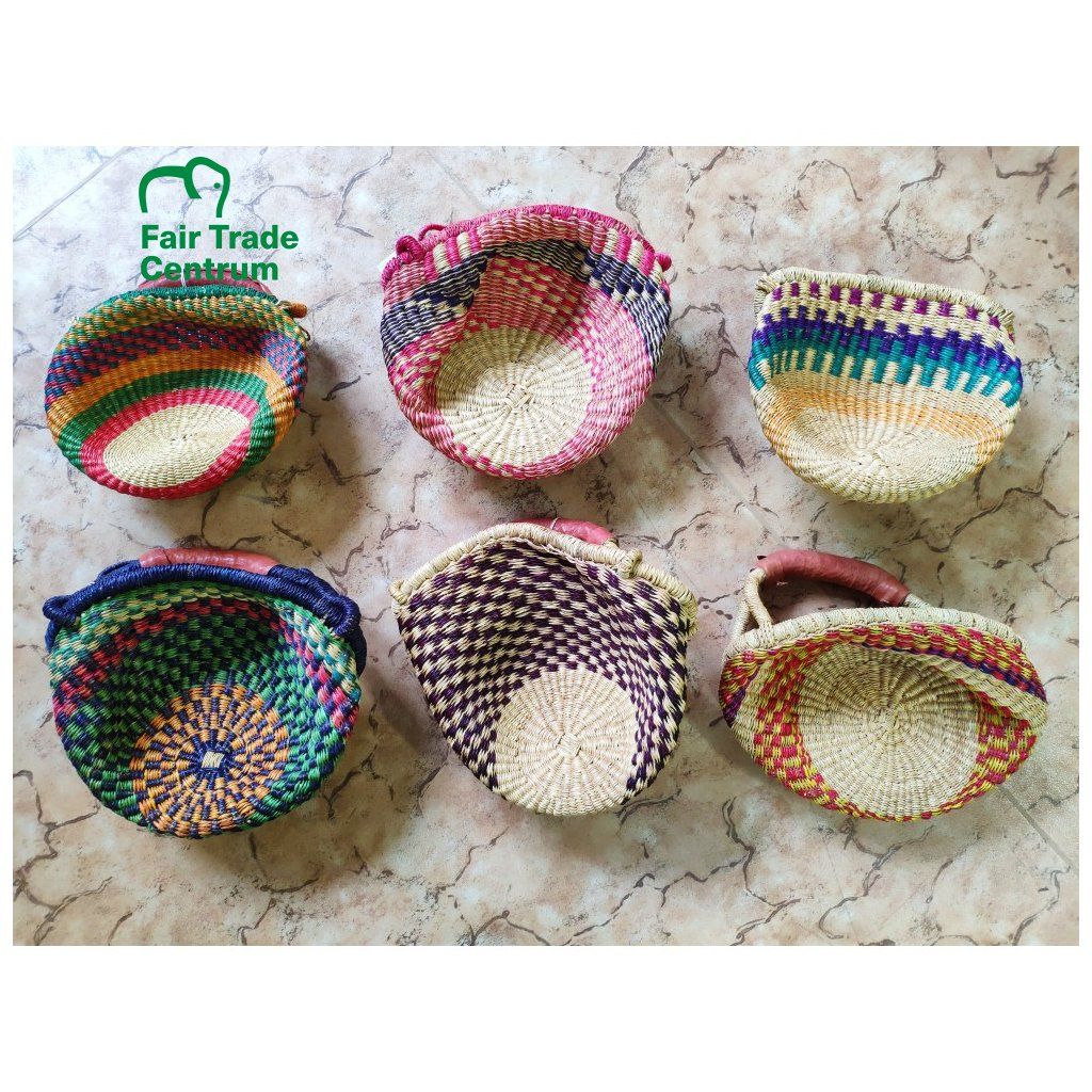 Nádherně barevný, malý kulatý košík Bolga s jedním uchem ručně pletený ze stepní trávy. Pro obyvatele severní Ghany jde o tradiční práci, které se věnují se vší vážností a zručností předávané po generace. Krásný produkt spravedlivého obchodu fair trade a ideální společník na nákupy.