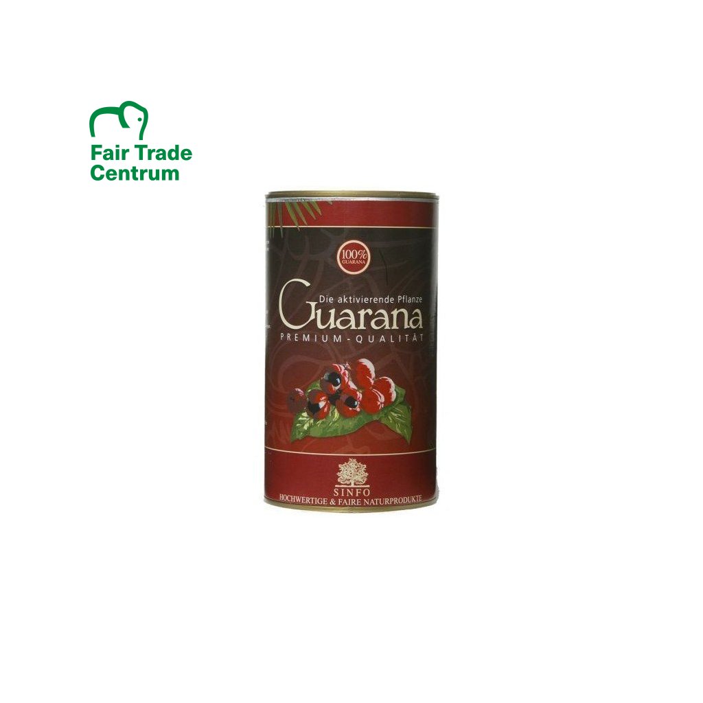 Guarana (paulinie nápojná) je na kofein nejbohatší rostlina světa a roste v deštných pralesích Brazílie. Jedná se o jeden z nejsilnějších legálních a přírodních stimulantů na světě. Kofein guarany (guaranin) je vázán na třísloviny a v organismu se tak uvolňuje postupně po dobu až 6 hodin. Díky svému pozvolnému a dlouhotrvajícímu účinku, obsahem vlákniny, rostlinných bílkovin, sacharidů, minerálů a nenasycených tuků je také velmi dobře snášena a využívána. Obsahuje až 3x více kofeinu než káva, ale nezvedá tolik krevní tlak, nepřekyseluje a nedráždí žaludek a uchovává si vitamíny C a B. Povzbuzující účinky guarany znají amazonské kmeny již dlouhá staletí a využívají ji také jako vynikající afrodisiakum. Guarana pomáhá udržet pozornost a bdělost, zvyšuje mentální výkonnost a zlepšuje paměť. Používá se k tlumení bolesti a svým antibakteriálním působením tlumí lehké formy průjmu. Je schopná snižovat pocit hladu a zrychluje metabolismus. Užívá se proto jako doplněk stravy při redukčních dietách a je účinná také proti alkoholové kocovině. Naše Fair Trade guarana prémiové kvality se ručně sbírá v pralesích Brazílie, suší na slunci a mele na prášek bez skořápek. Je první guaranou na světě z kontrolované ekologické produkce a v Německu prochází další kontrolou v nezávislé laboratoři. Jde o 100% čistý přírodní bio produkt z rozvojového projektu ONCA. Je bez umělých přísad, barviv či pojiv. Vhodné i pro vegany.Příprava: guaranový prášek má zcela univerzální použití. Můžete ho zamíchat do ovocných šťáv, obilovin, cereálií, müssli, mléčných koktejlů, kakaa, kávy, čaje a dalších horkých nápojů (nezalévejte ale vroucí vodou, pouze horkou). Je možné ji jen smíchat s čistou vodou. Guaranový prášek vždy důkladně zamíchejte, jemný sediment je však běžný a není na škodu.Dávkování: vyzkoušejte půl lžičky (2 g) guarany a v případě potřeby můžete zvýšit až na jednu čajovou lžičku denně (4 g). Pro svůj dlouhotrvající účinek je vhodná konzumace ráno či v dopoledních hodinách.