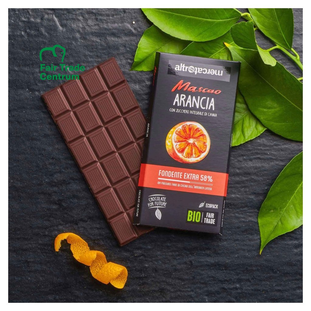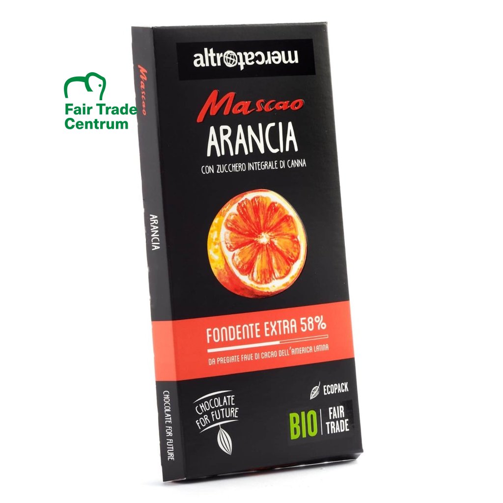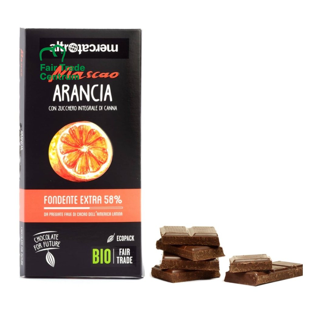 Jemně hořká čokoláda, která kombinuje 58 % kvalitního fair trade kakaa z Peru a Bolívie se sladkým a lehce kyselým aroma pomeranče. Tato harmonie kakaového základu se svěží citrusovou vůní pomeranče zanechává v ústech velmi příjemný a svěží pocit podpořený ještě třtinovým cukrem Muscovado z Filipín se svými typickými karamelovými aromatickými tóny. Výsledná tabulka čokolády ze surovin z ekologického zemědělství vzniká ve Švýcarsku pod rukami mistrů čokolatiérů s téměř 100 lety zkušeností.