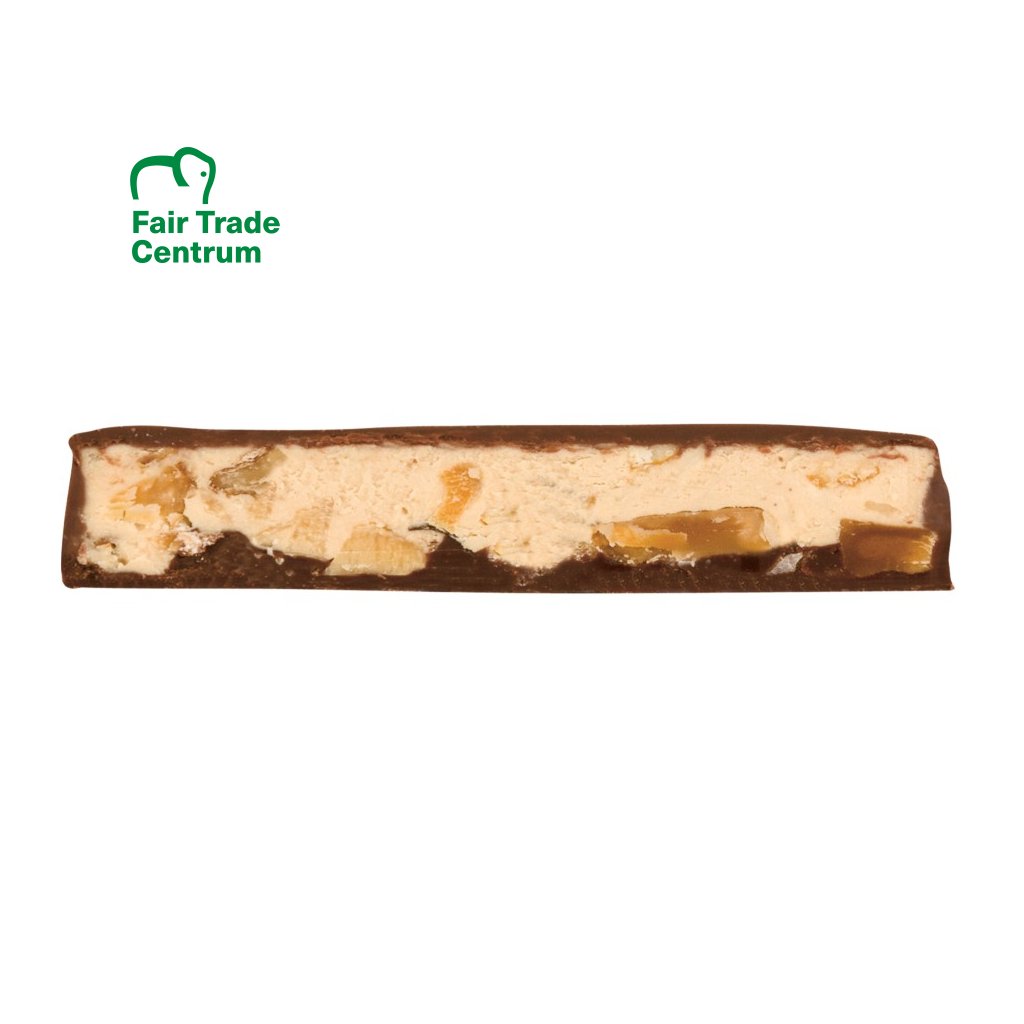 Vynikající fair trade mléčná bio čokoláda z horského mléka z tyrolských Alp a poctivými 50 % kakaa, která ve vás vyvolá chuťové vzpomínky z dětství. Přináší všechny ty sladké, ořechové a čerstvé chutě jako byste právě přišli z vašeho místního vánočního trhu. Tato čokoláda je totiž plná domácího mandlového nugátu (48 %) s křupavými čerstvě praženými a karamelizovanými sekanými mandlemi (12 %).