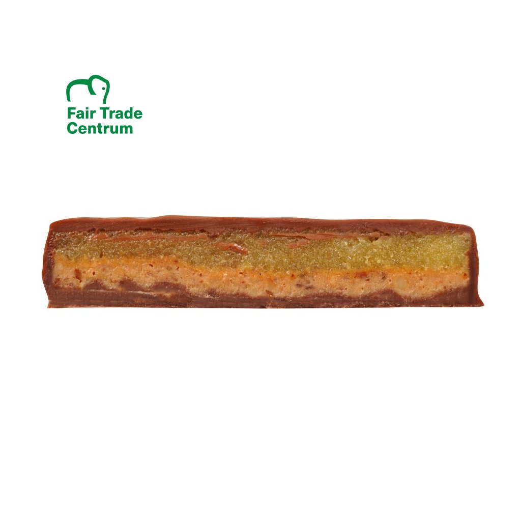 Nevšední fair trade mléčná bio čokoláda z horského mléka z tyrolských Alp a vysokého podílu kakaa (50 %), která dokonale shrnuje vůni a chuť vánočního času. Je plněná kořeněným marcipánem (30 %) a lískooříškovým nugátem (30 %) provoněným aromatickou skořicí. Nechybí ale ani lehce pikantní tón zázvoru a špetka pepře pro zahřátí.