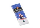 Krásné dvoubarevné balení 5 bílých a 5 mléčných čokolád se 40 % kakaa z Dominikánské republiky ve vánočním designu se zlatými provázky k snadnému zavěšení.