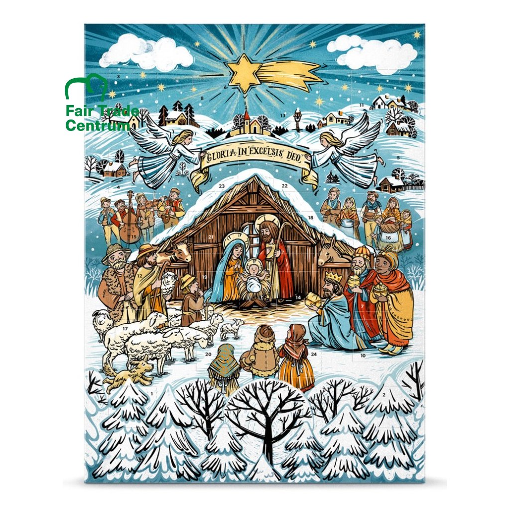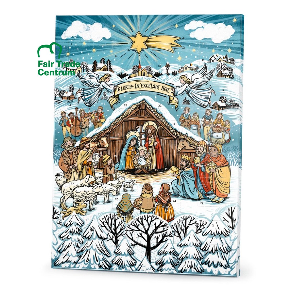 Bio adventní kalendář s vánočními motivy Betlém v češtině, 37 % kakaa
