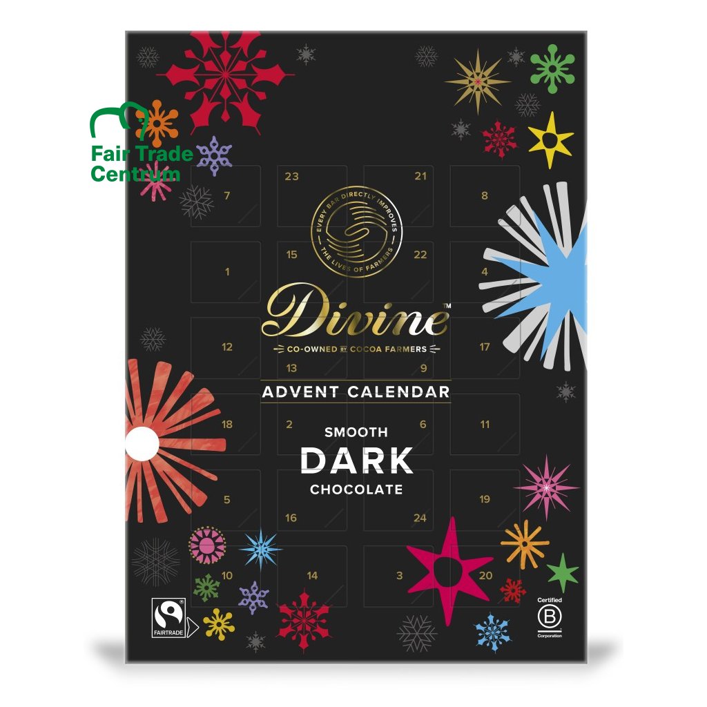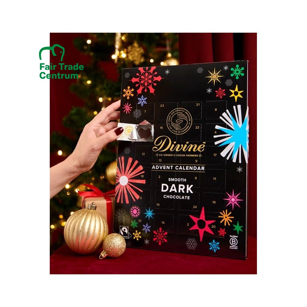 Dopřejte si letos adventní kalendář neobvykle plněný hořkou čokoládou s příběhem o drobných afrických rolnících, kteří ve Velké Británii před 25 lety spoluzaložili továrnu na čokoládu. Je vhodný i pro vegany.