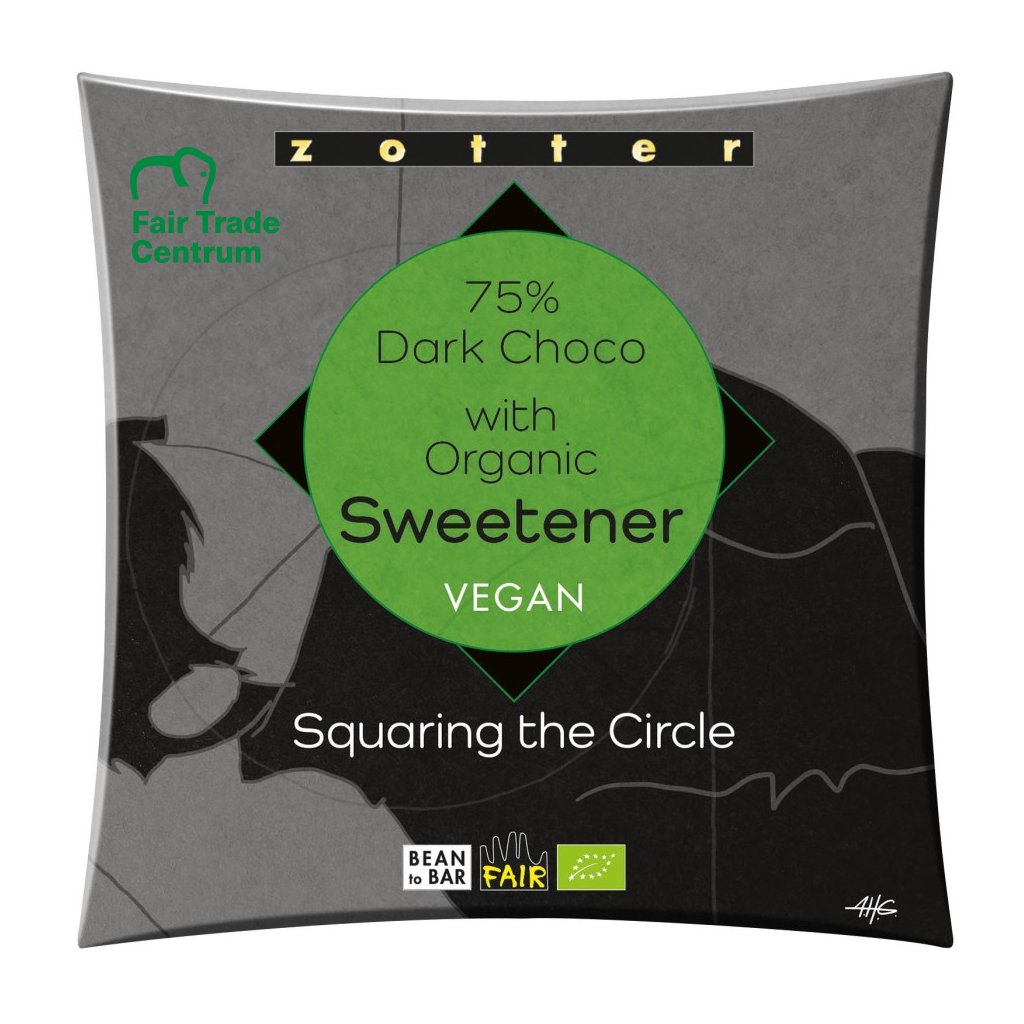 Tvar čokolády odkazuje na známý geometrický problém kvadratury kruhu. Stejně jako tato "neřešitelná" úloha se dlouho jevila i snaha uvařit sladkou čokoládu bez klasického cukru. Mistr Josef Zotter to však v této čokoládové delikatese dokázal a jako čtverec vepsaný do kruhu, vetkl do této čokolády organické sladidlo budoucnosti.