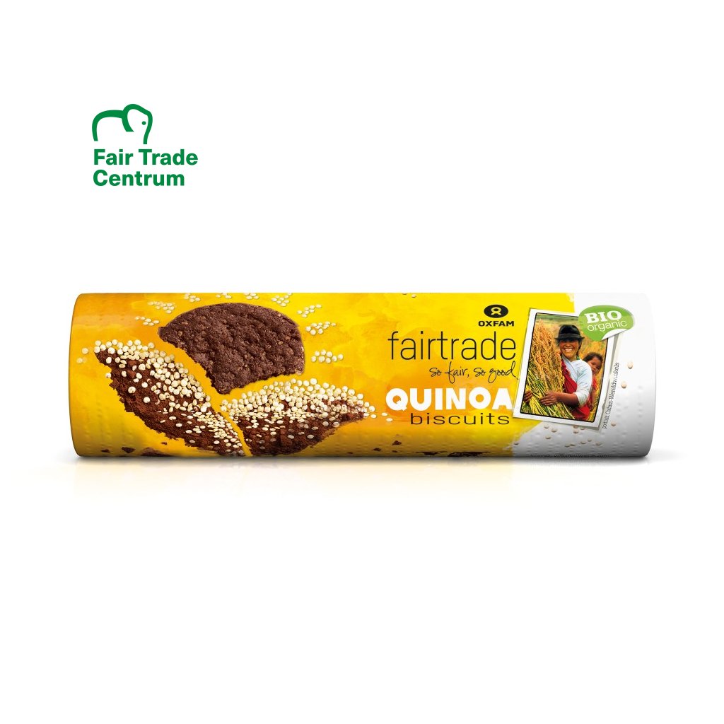 Lehké a křupavé sušenky s kakaem a Zázračným obilím Inků, quinoou, nejdůležitější základní potravinou indiánů hospodařících v Andách, vyznačující se vysokým podílem bílkovin. V těchto sušenkách je od sdružení Coopain z Peru. Vedle kukuřičné mouky můžete ocenit i méně tradiční rýžovou mouku z Thajska. Lehká sladkost třtinového cukru z Paraguaye a troška medu z Argentiny podtrhuje přirozenou chuť jednotlivých složek sušenek.