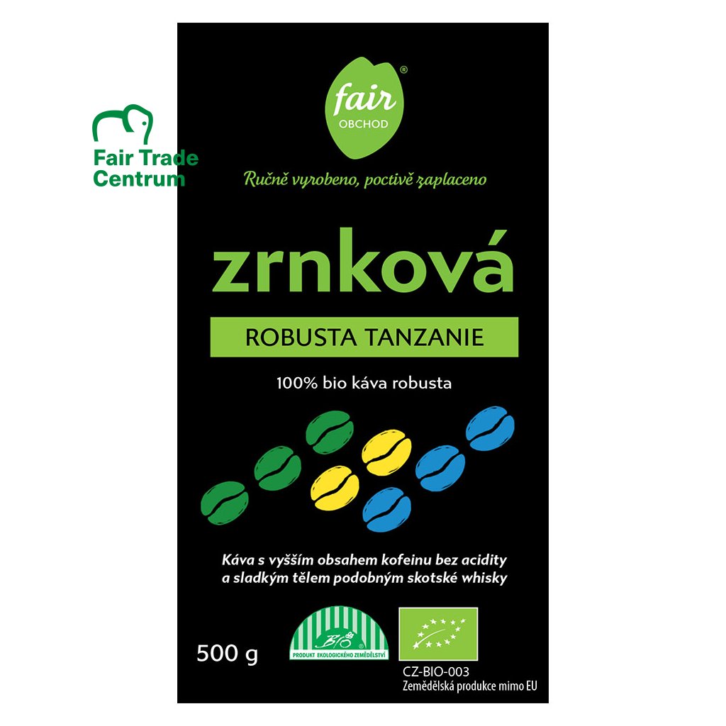 Bio zrnková káva Robusta Tanzanie, 500 g